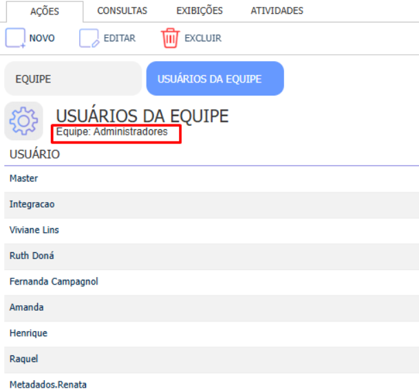 - No módulo Administração, acesse o menu com o usuário master: Segurança > Equipes.