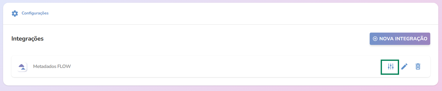 - Clique no ícone de Integração, destacado na imagem abaixo: